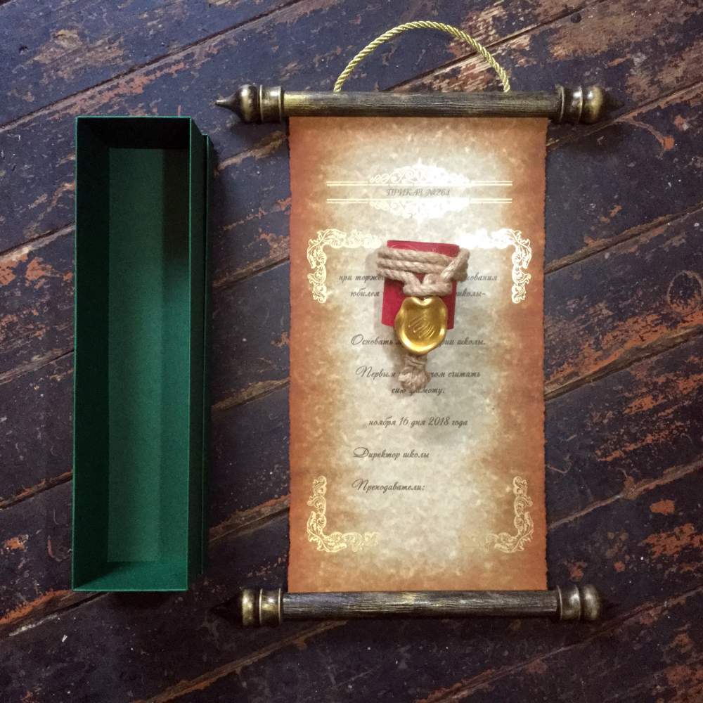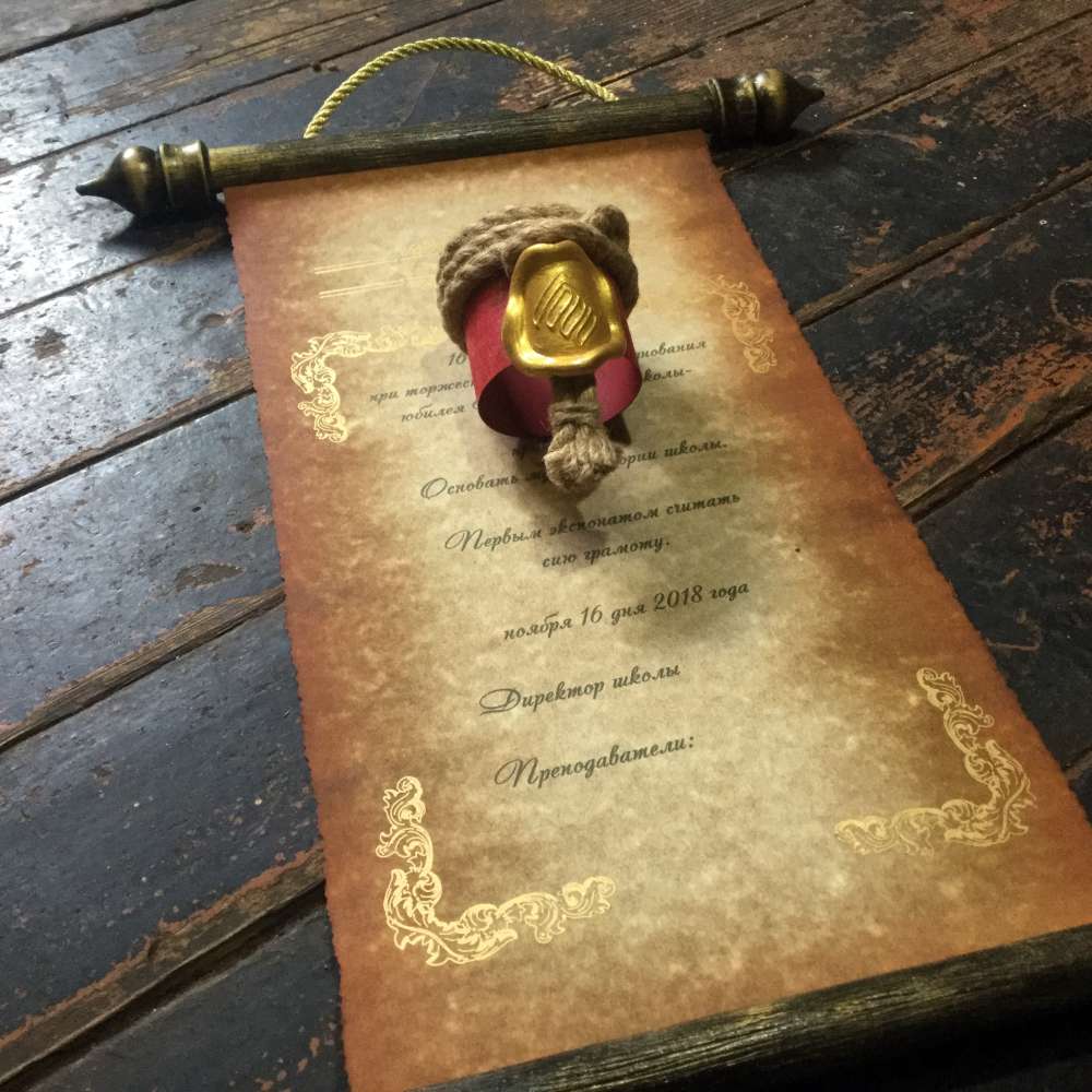 – наш каллиграф пишет текст на свитке, услуга оплачивается по дополнительным расценкам. При заказе уточните пожалуйста возможность привлечения штатного каллиграфа.