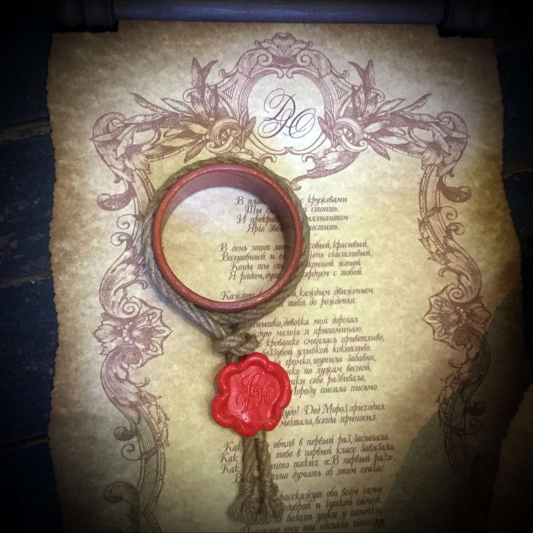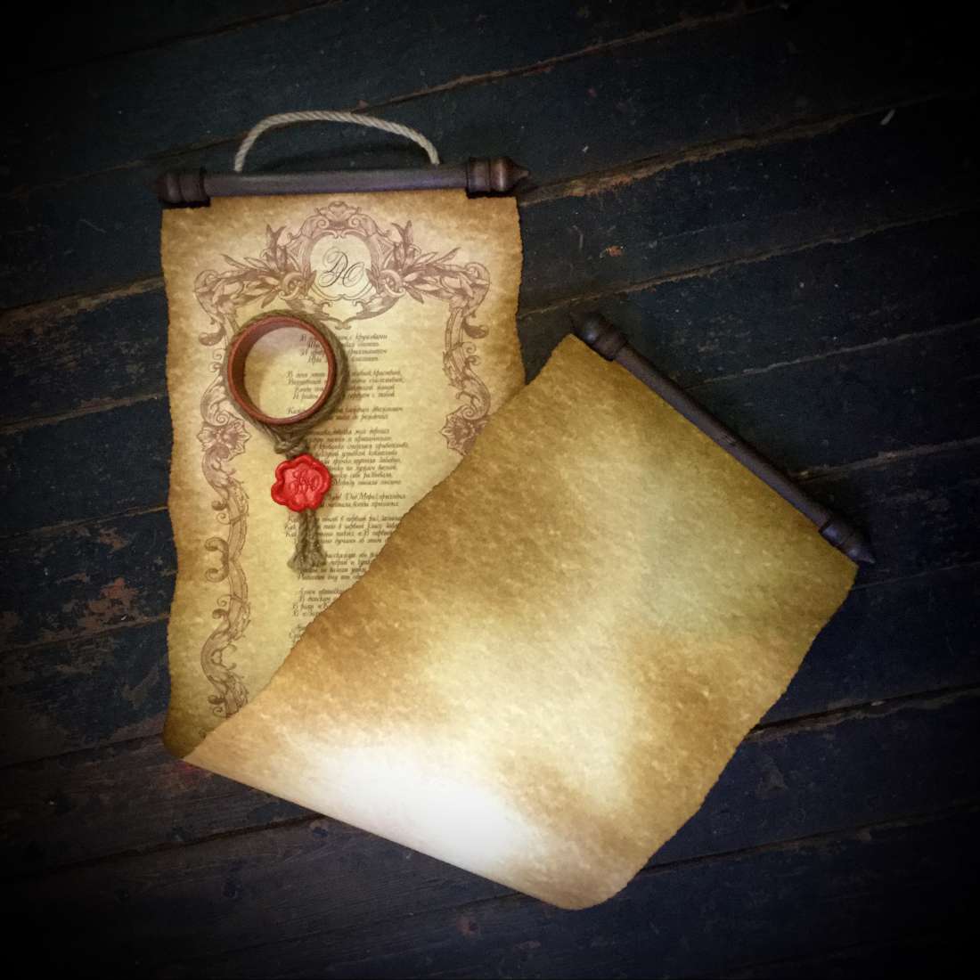 Состаренный свиток на палочках с Вашим текстом – подарок на свадьбу. Длина до 100см, ширина 21см. Есть возможность сделать ширину бумаги 30см: стоимость такого свитка рассчитаем отдельно.