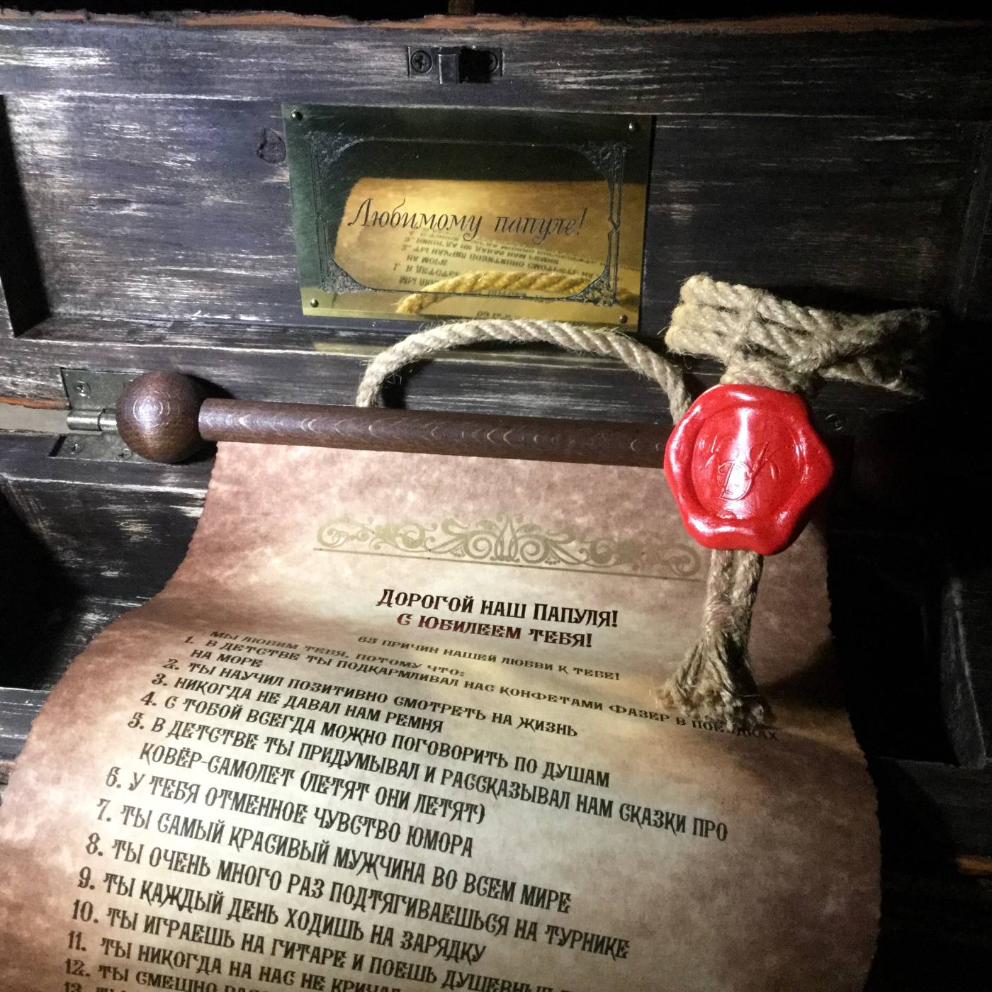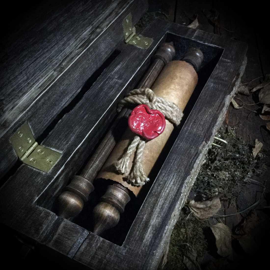 Состаренный свиток на 2-х палочках в ларце “Аспен”